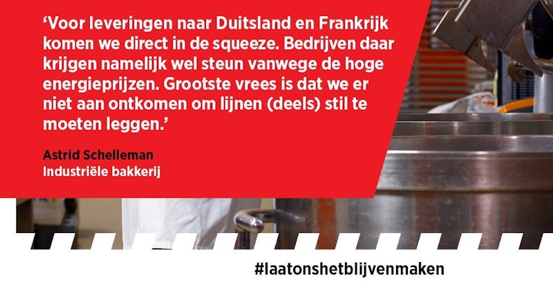 Deze week start deze week een campagne ‘Laat ons het blijven maken’ van 20 brancheorganisaties - onder begeleiding van VNO-NCW/MKB Nederland - gericht op het kabinet. Dit naar aanleiding van de problemen door stijgende energieprijzen.