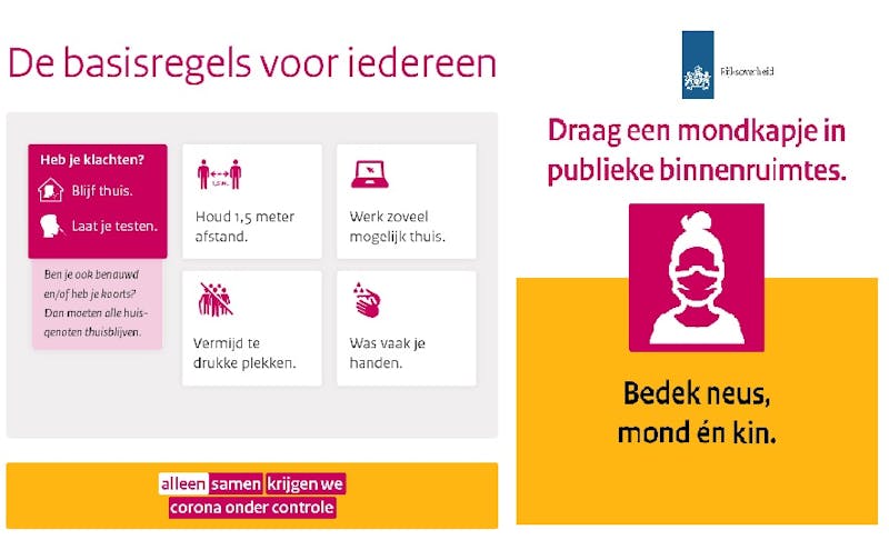 Controle over het virus krijgen we alleen als iedereen zich aan de volgende basisregels houdt.